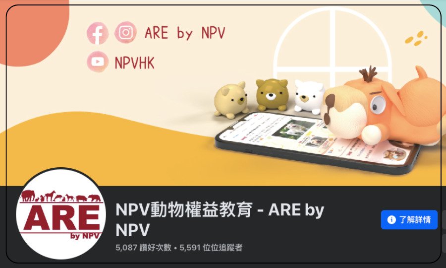 AREbyNPV (Animal Rights Education by NPV) 動物權益教育小組致力推廣動物權益教育工作,透過不同的文章、短片… 讓市民認識、了解和反思,我們應該如何對待動物。